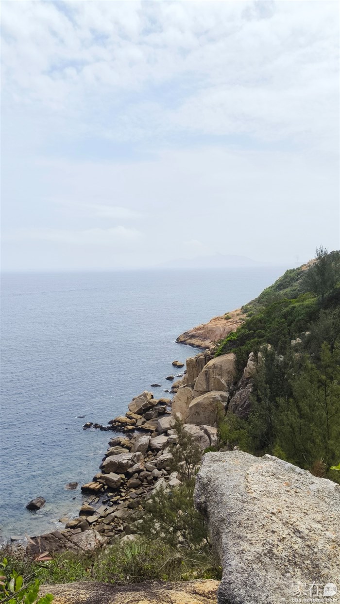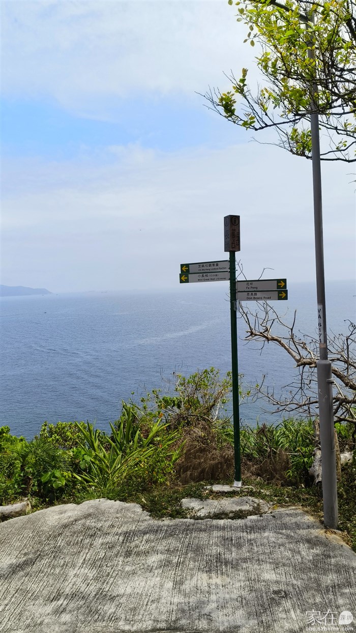 接着一直沿线路往小长城这一段走,有点山坡,不过不是太高而且都有台阶铺路不难走。 中间有一些观景台,视野不错,从高处远眺大海,心旷神怡。这时太阳也出来了,虽然不是全蓝天但能见度也好了很多。