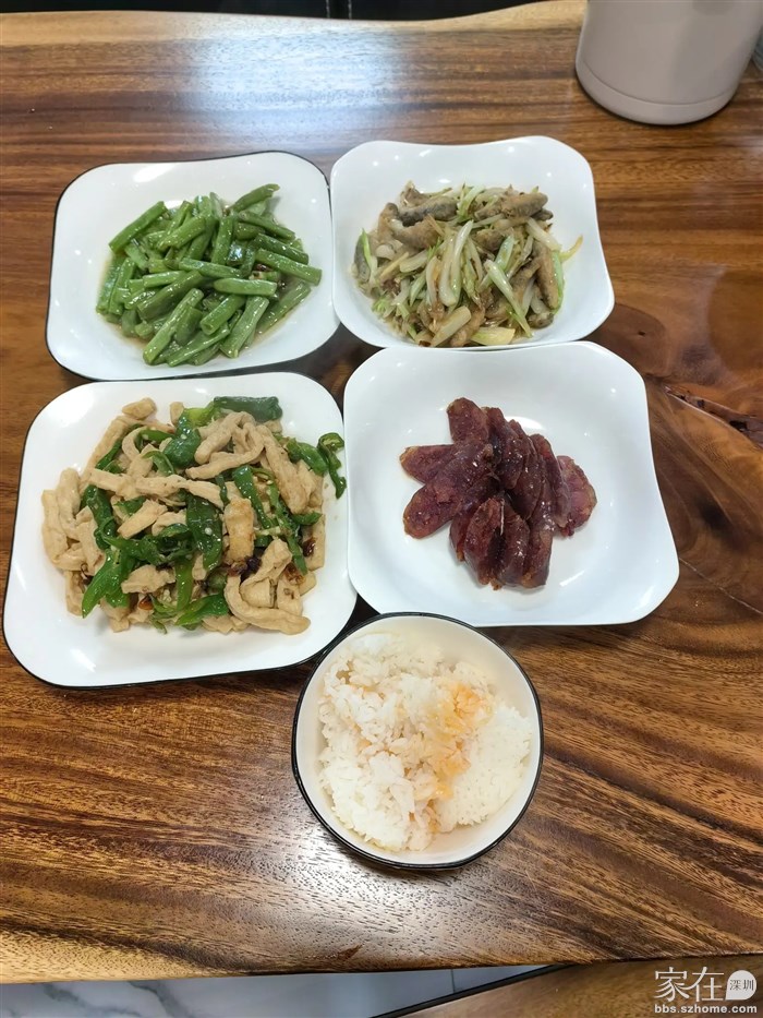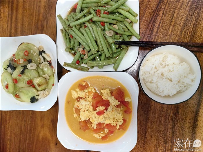 引用豫任的发言:据图,猜下可能是,蒜片炒黄瓜,炒豆角(有荤?),鸡蛋炒西红柿,米饭一份。 假设如此,若我做,可三菜并两菜,炒豆角时,和西红柿一块炒一份,黄瓜炒鸡蛋一份,如此,菜品种没少,但少个盘子哈😆