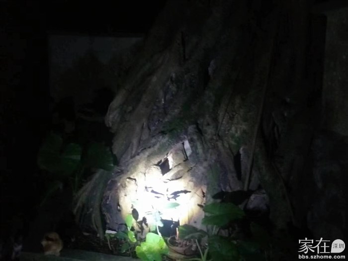 有天傍晚,喝酒回来的晚了,一时好奇,打开手电筒看看那个老猫的窝,它就住在山神庙的一颗大树下,意外发现,它带领几只小猫在那里玩耍。看样子,小猫有四五只,大概刚刚出窝。都很活泼。