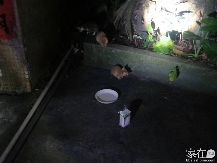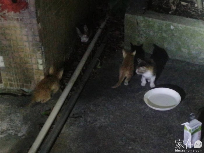 又是几天过去,还是深夜路过,忽然听到小猫们发出很凄厉的叫声。循声望去,这几只小猫在那里声音嘶哑的叫着,想来是饿了,奇怪不知道大猫去那里了。