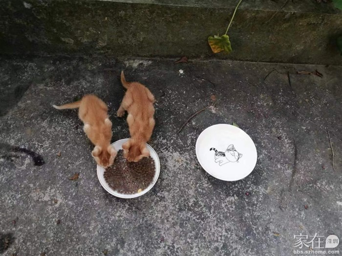 想了想,赶紧去拿了两个盘子,买了瓶牛奶,给它们分别倒在两个盘子里。