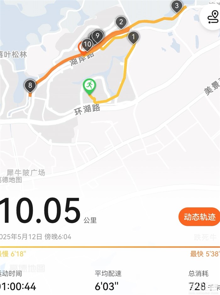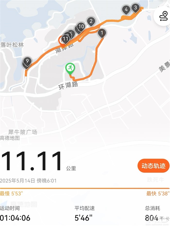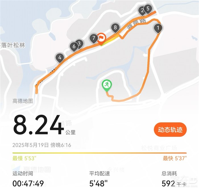 下雨磨蹭半天,还是小跑一下,8公里。