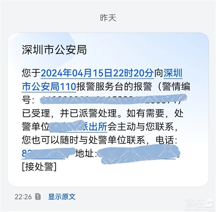 要不是昨晚太晚了,派出所接警民警就要来做笔录了,——我跟他们说推迟到今天下午下班后再做笔记,然后我会拿着报警回执和相关资料到位于沙头街道天安社区泰然四路的房网办公地点让房网工作人员协助出面处理!