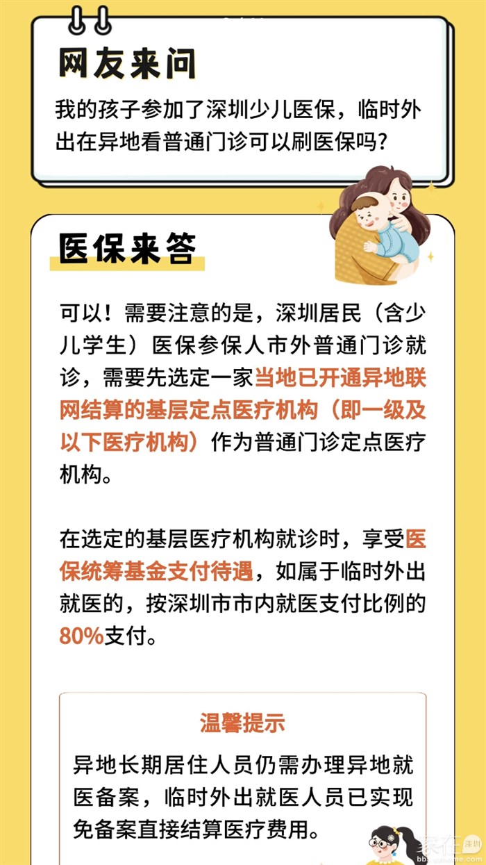 就算是在深圳本地就医,少儿医保也不是所有医院都可以刷卡的,绑定社康和二级以下医疗机构才可以,去其他医疗机构,还得先去社康挂号再转诊。
