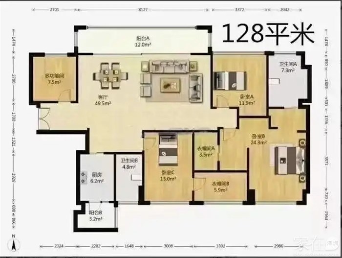 平面效果这么毛燥,128户型公卫都没开门,从窗户爬进去?