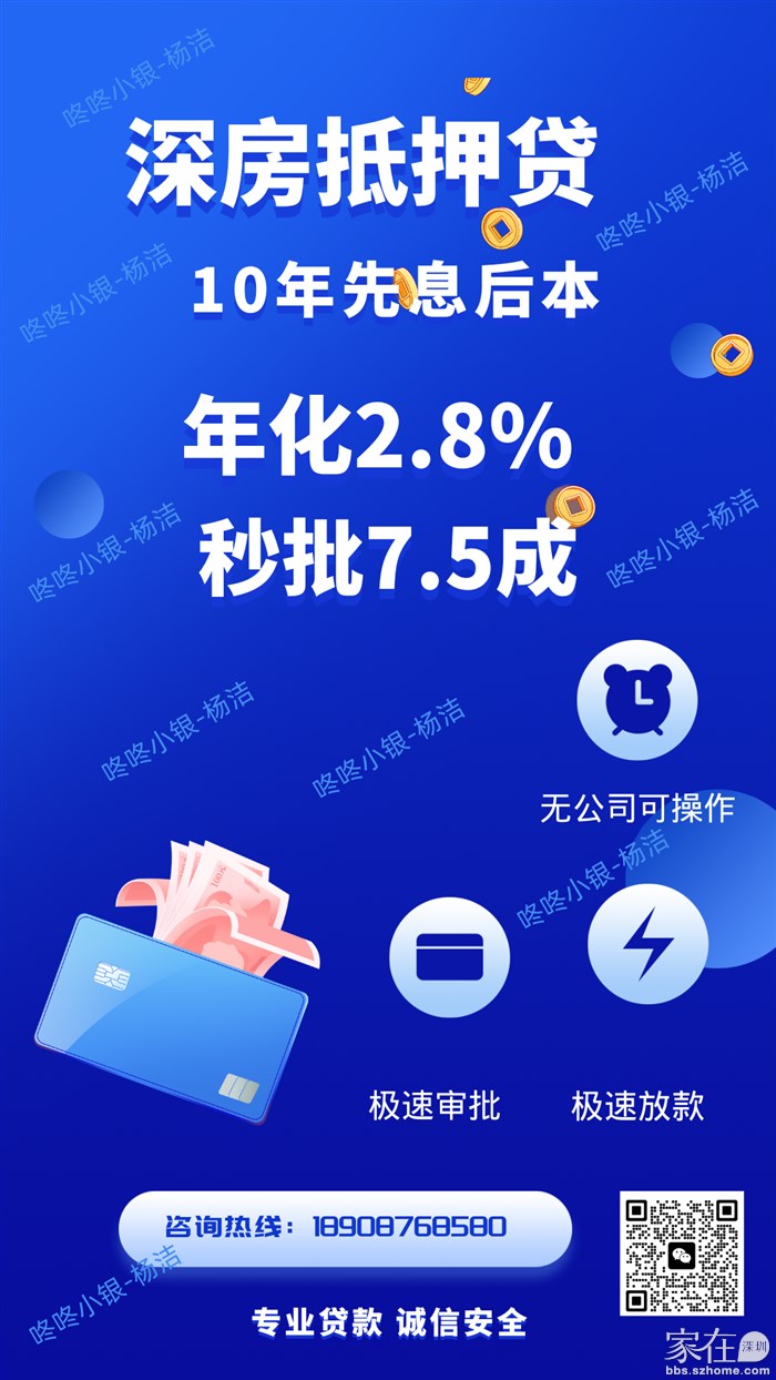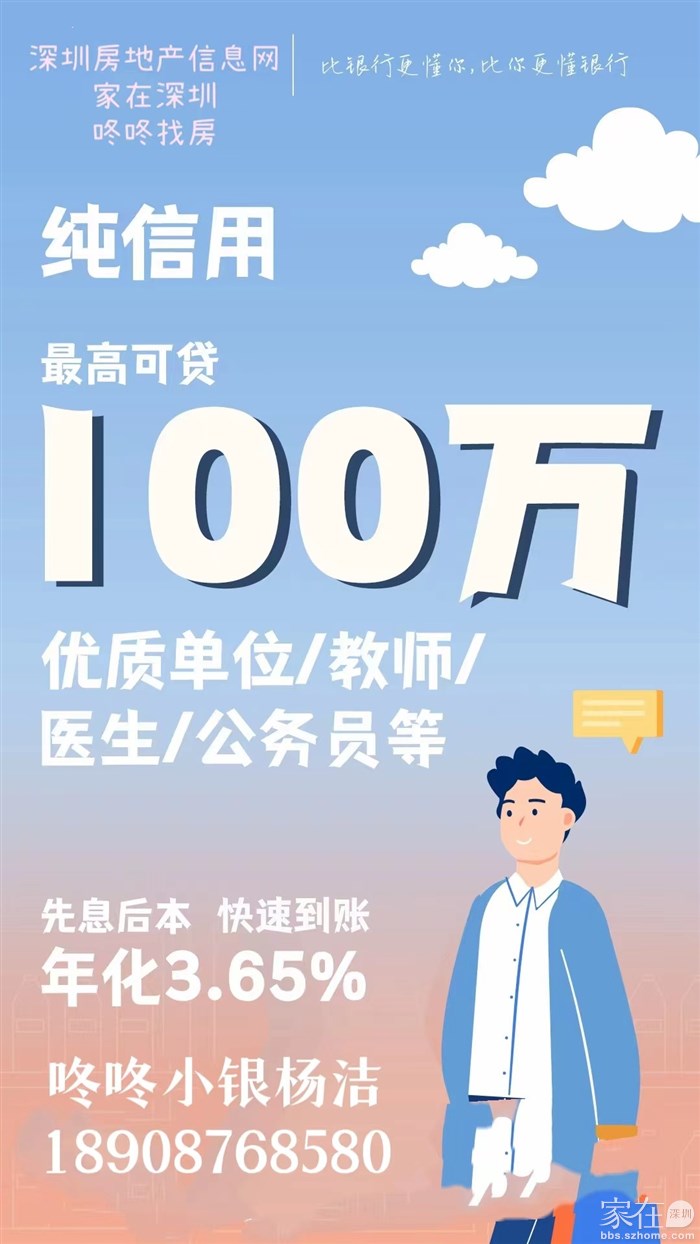 请扫码添加杨洁微信或致电18908768580(咚咚找房、家在深圳论坛唯一官方金融服务团队)