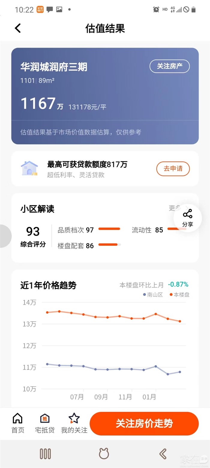 回到上面的例子,如果半年后可以按评估价来申请贷款(可能比购买时登记价高),海X公馆89.7平购买总价717W,当时按揭了5成也就是欠款还有差不多340W。贷款额度:13*89*0.7=816再减去欠款340到手要476。可参考下面两图:今年我也陆续接到几位新房业主咨询,比如新*界临**山,海**馆、TJTJ、深**府、深*阅*境,包括前两年的华*城3期分两批交付的、还有招**玺等持续更新中。。。。如果想知道你家的房子评估价达到多少,欢迎私信聊聊。