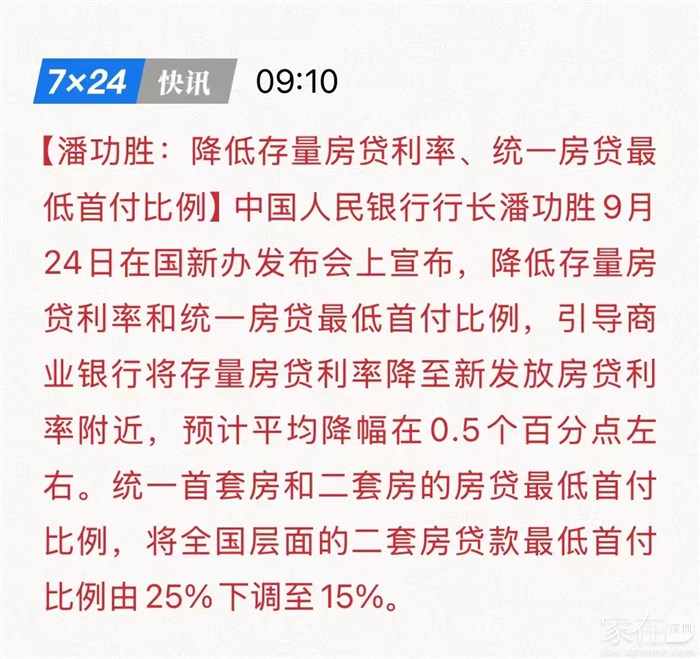 央行|降低存量房贷利率,统一房贷最低首付比例