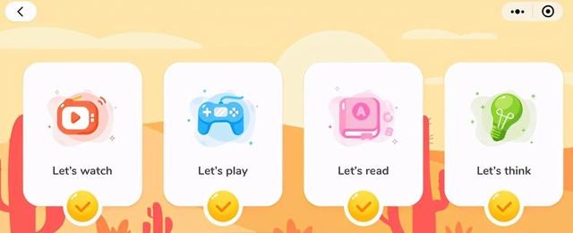 学习流程:奇奇学英语通过听-练-问-读-复习打造一个学习闭环,每本绘本都由4个部分组成,分别为watch\play\think\speak,课程直接在小程序里进行,无需下载app,牛津阅读树训练营课程还加入了游戏互动,AI打分以及原版跟读等环节,周末还有独家设计的worksheet练习册,可以帮助梳理一周学习内容,进行复习;
