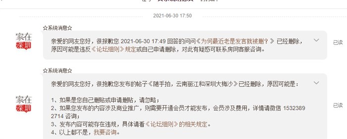 发布内容,为什么删除?