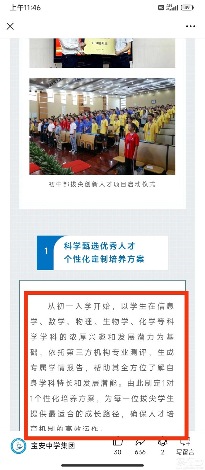 引用12楼lacici的发言:这个班都在搞高中内容了引用10楼未明的发言:了解了一下,初中部去年开始搞这个创新班。袁校长当集团校长后,难怪以前没有。引用7楼楼主的发言:后续肯定有公众号可以填资料,类似深中,深圳中学小升初是在深圳中学教育服务中心上面注册填资料,上面需要填的很详细,你的课内成绩及获奖记录等等引用未明的发言:现在问怎么点的问题?昨天晚上跑步特意去问了门口保安,说不知道收简历这会事。引用3楼lacici的发言:真的,全市点
