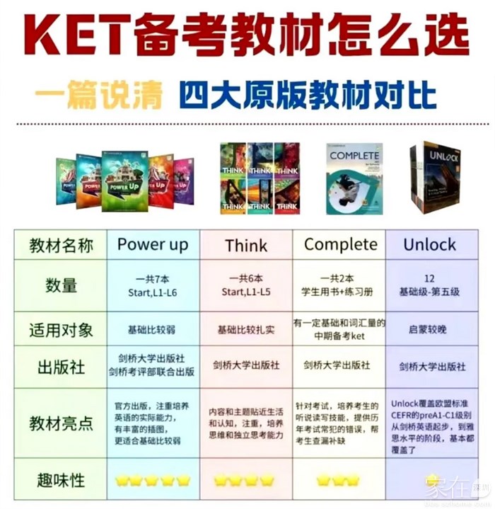 3。关于KET备考路线规划01 完全零基础未系统接触过英语,但已经具备一定的听说基础和词汇积累,能认读26个字母的孩子。备考建议:可以先从剑桥少儿英语(剑少)入手,先要打好英语基础,平稳过渡到KET。