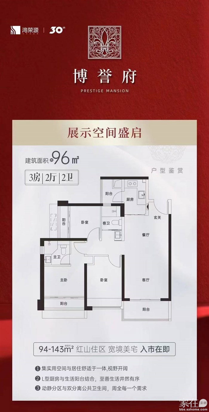 🏠项目概况:博誉府总建面:约35万㎡一期套数:774套一期户型: 约94-96㎡三房两厅两卫