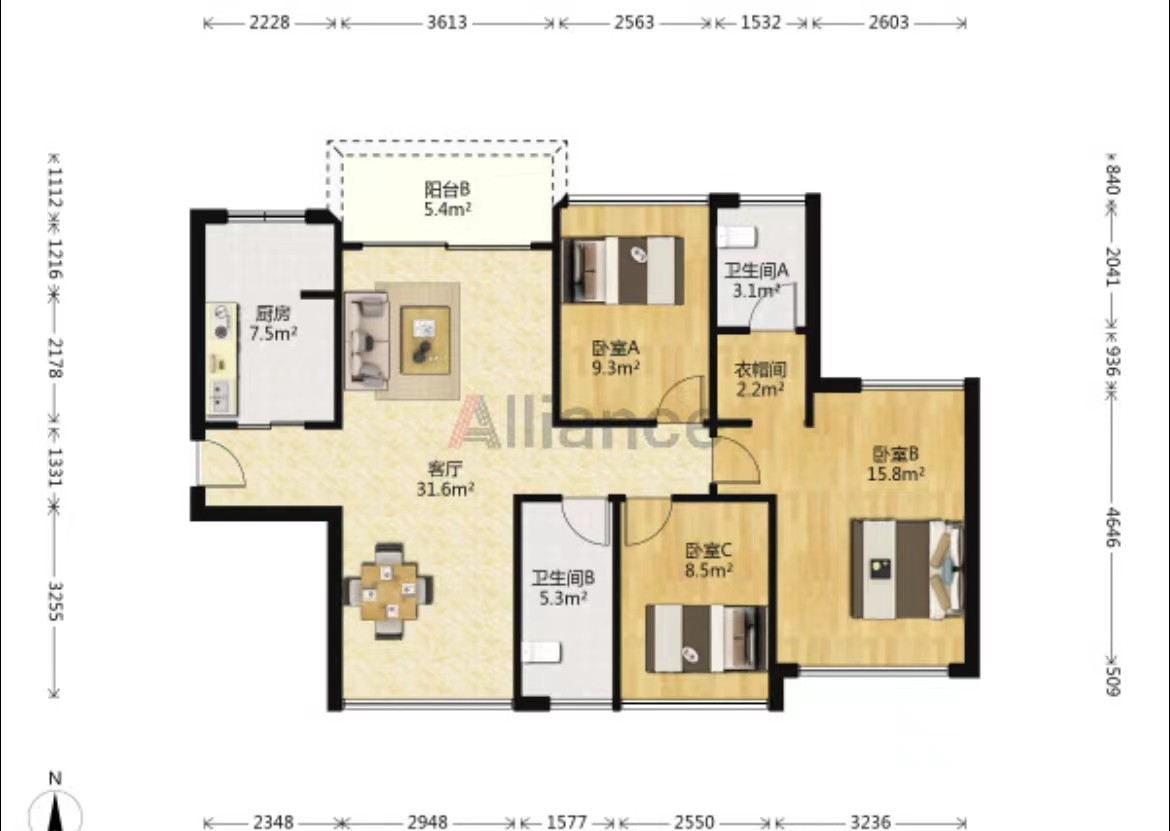 建筑新规的影响额外面积受限,100㎡以下户型房间尺寸相对不是很足,但档次和舒适度有所提升。