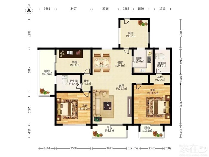 户型:3房2厅2卫2阳台