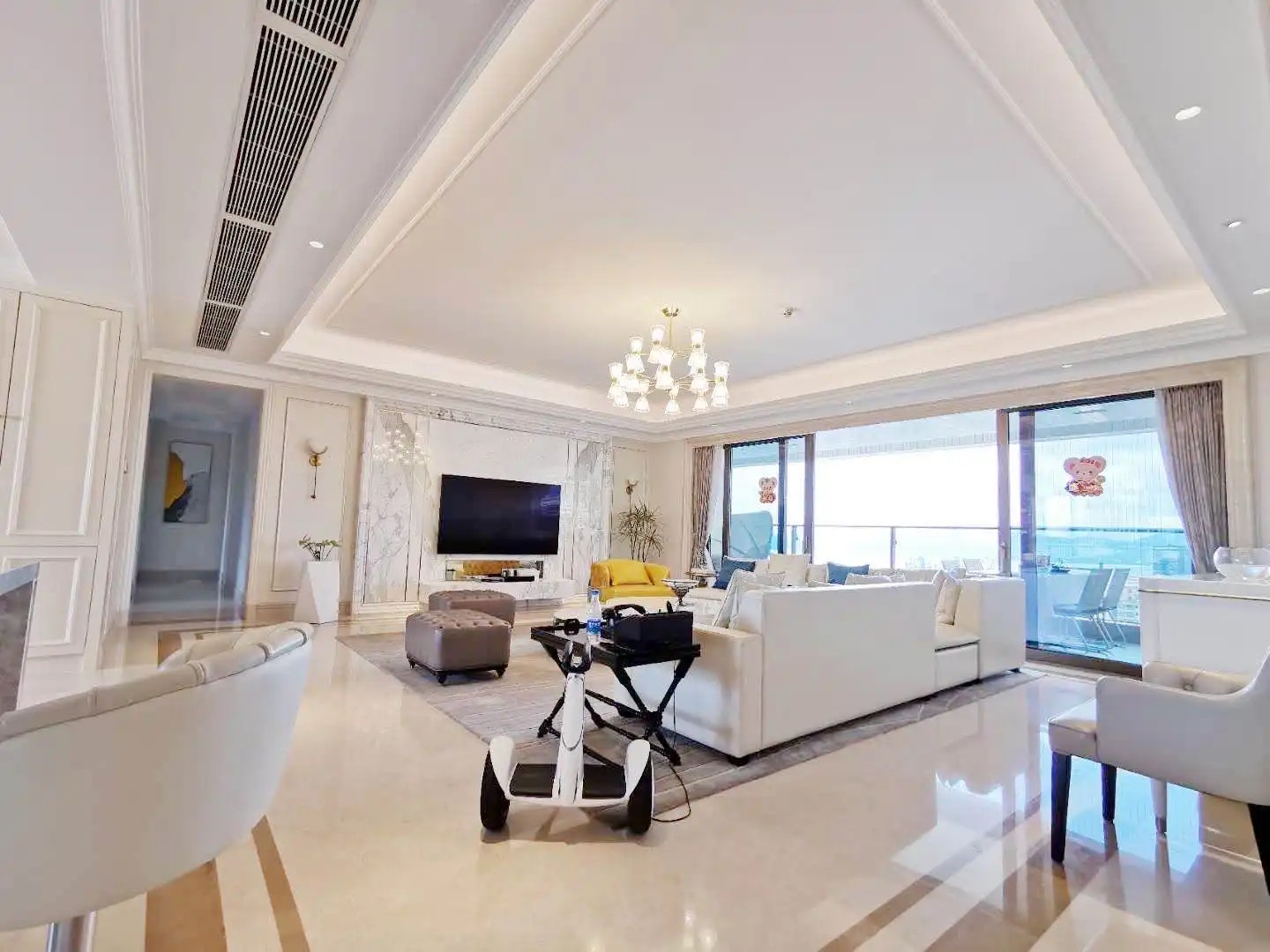 客厅开间7.5米,阳台长16米