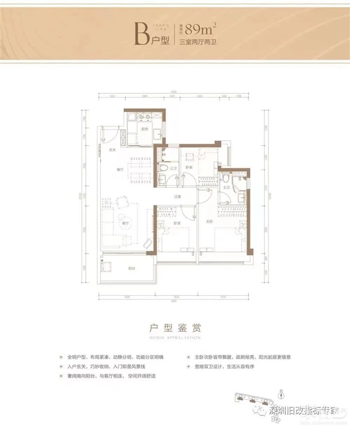 户型面积:建面约89-110㎡三至四房