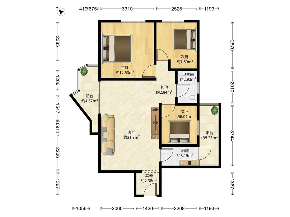 【房屋简介】1995年建成,带电梯,高层位置,南北朝向,三室两厅两卫布局合理,空间利用高效,无浪费面积。餐厅客厅分离,视野开阔,采光很好。
