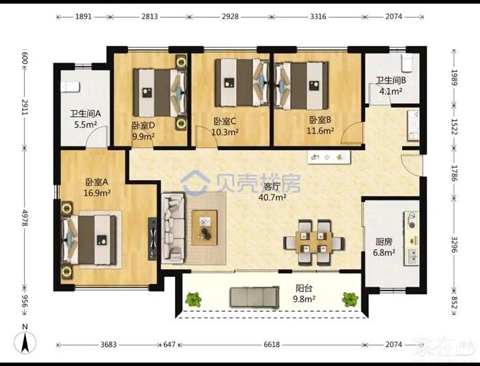 户   型:4房2厅2卫
