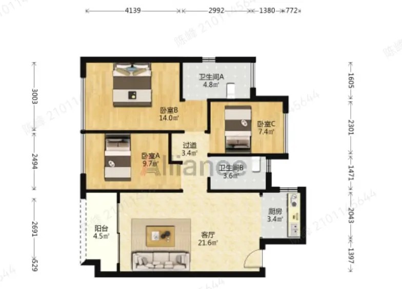 次新三房两卫235万,评估330以上