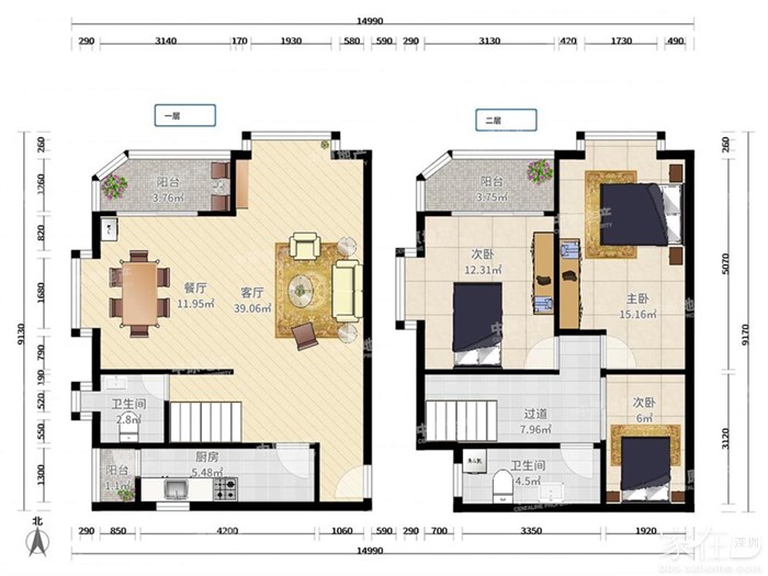 南山中心区!鸿瑞花园!131平!满五!双层复式!售!11xx万!配合看房!
