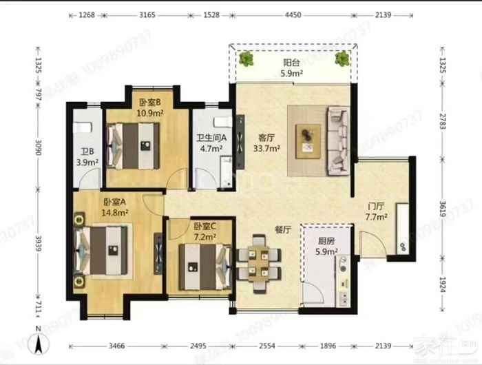 天健郡城109平3房送入户,满5唯一红本,卖375万,南北通透!