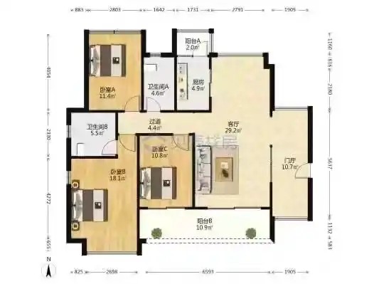 水岸新都,大三房二厅二卫,大阳台,134平方业主实收308万。房子方正,又新又好