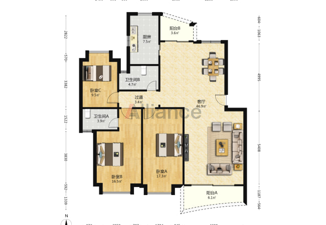 海月花园132平四房急售1100万