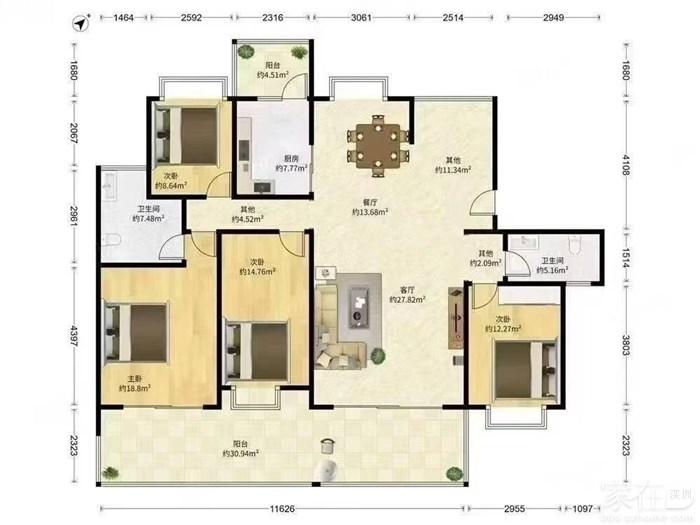 户型:4房2厅2卫