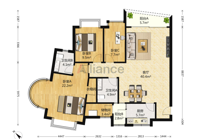 产权面积:136.14平米