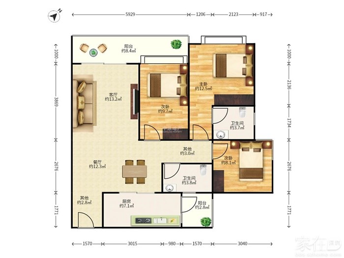 【个人】地铁2 5 8号线 次新3房一厅只租7500 花园小区 交通方便生活便利