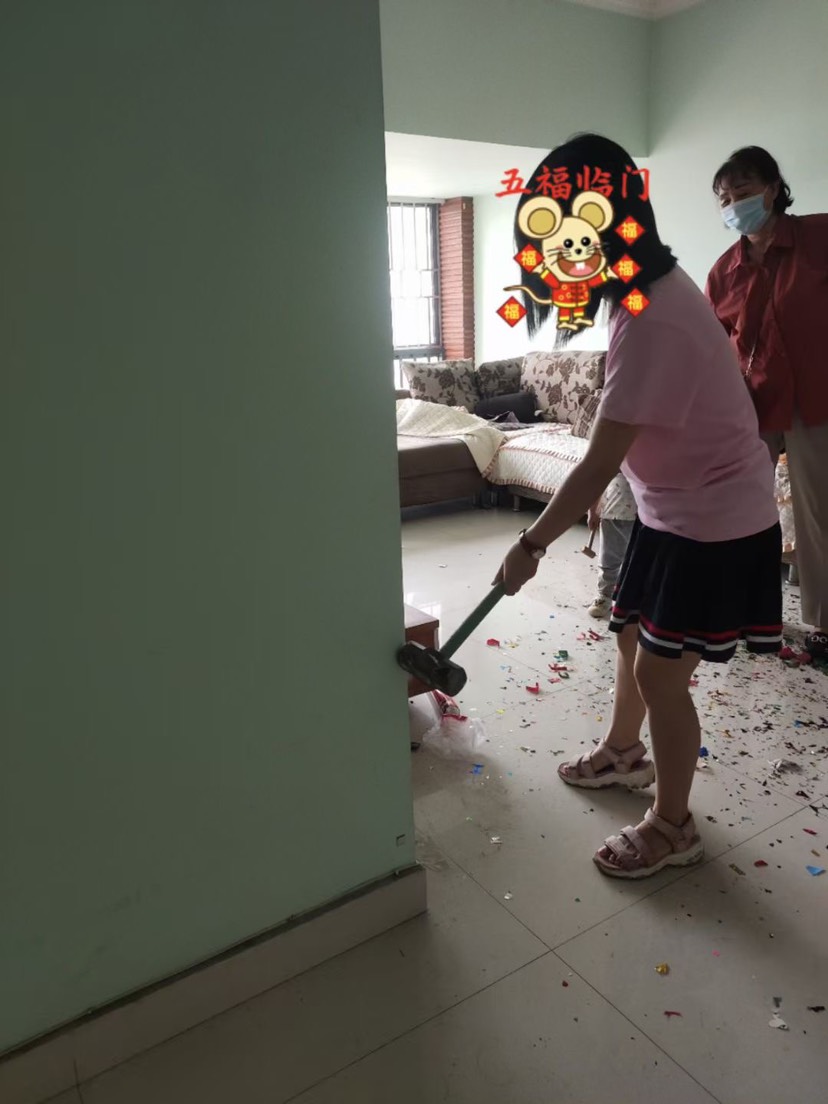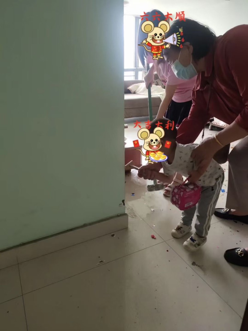亲自放礼炮,还是手生,娃吓了一跳