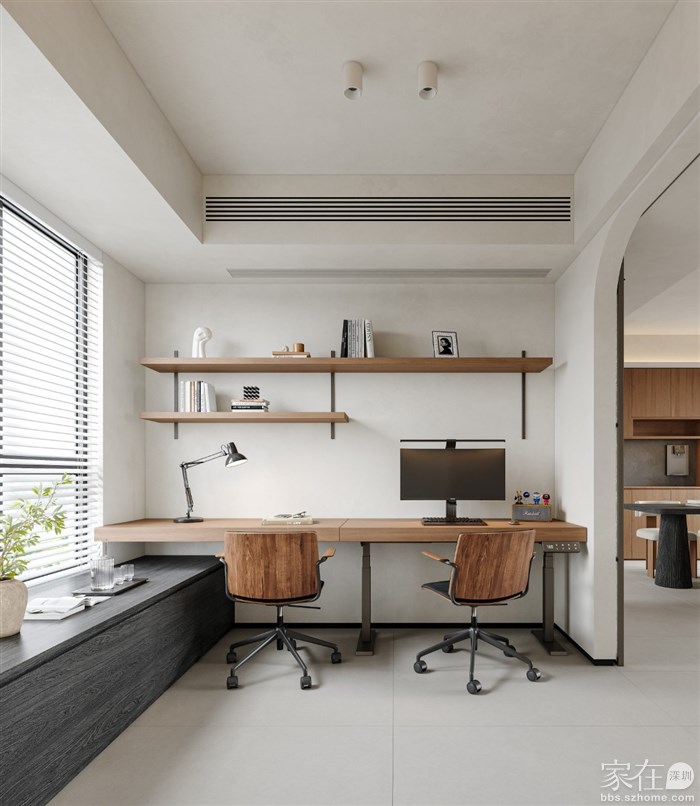💻 工作区: 在客厅的一侧,我们巧妙地设计了一个小型工作区。通过使用玻璃隔断,既保证了空间的开放性,又为工作提供了一个相对独立的环境。木质的书桌和现代的办公椅,让工作变得更加舒适和高效。