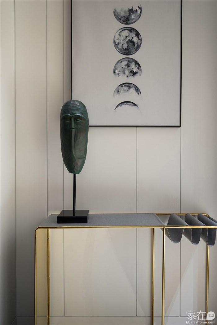 入门口的深墨绿色玄关摆件都是精心打造,那超然略带微笑的表情所仿佛在昭示我们即将开启一场艺术之旅,让人沉浸,着迷。