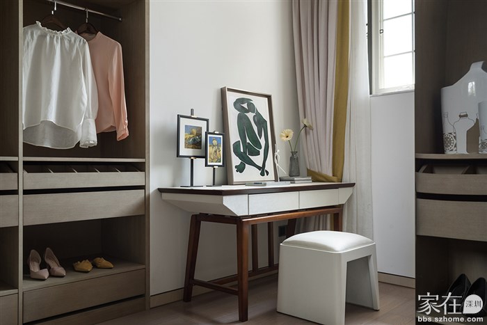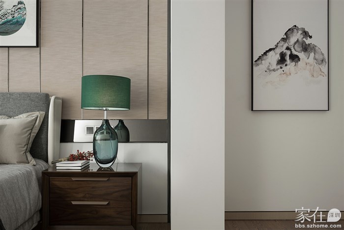 做旧的米黄色墙壁,那是阳光的味道,水墨画的装饰画,暗示着房子的基调,让人舒适中透着一种中式的温馨。