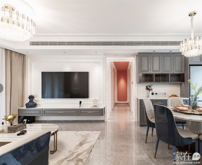 ①在水电阶段,墙面请预埋50管,后期插座可以藏在电视柜里,减少电视柜上面的插头,才会整洁不乱。电视插座无论在柜子内还是柜子后,一般插拔都不会很方便,所以最好装个带开关的插座,用着方便。电视附近基本用不到三孔的插座,可以用四孔代替五孔,增加插座的利用率。