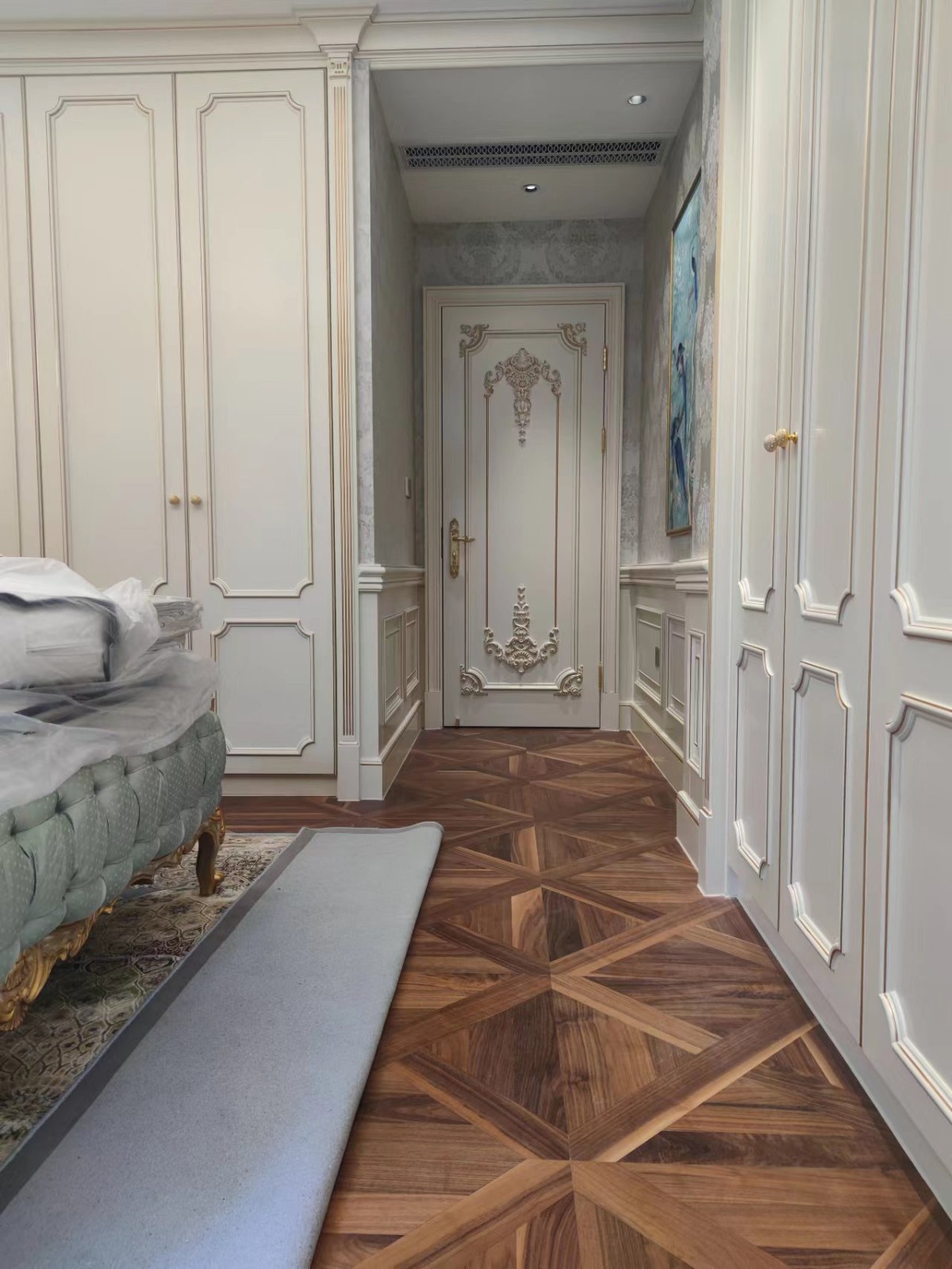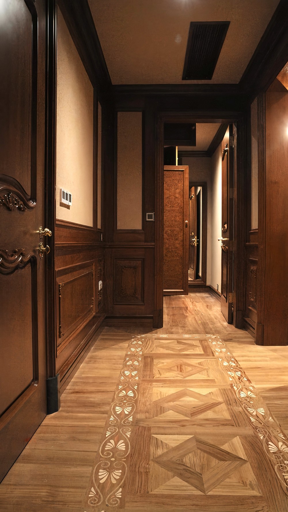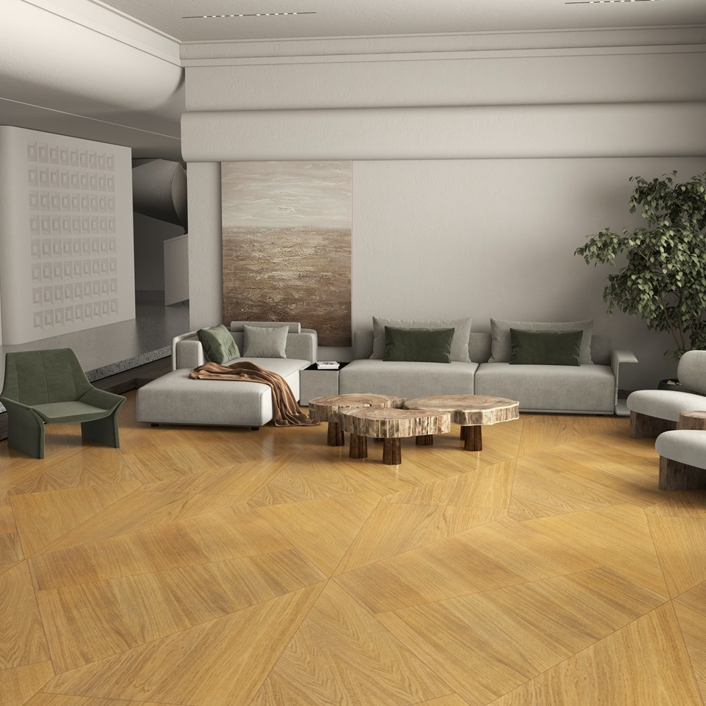 几何拼花地板以简洁而富有韵律的几何图形,构建出充满现代感与艺术感的视觉效果。它摒弃了传统拼花图案的繁杂冗余,但其作为尊贵与高雅象征的本质从未改变,始终是高端品味与优雅格调的代名词。