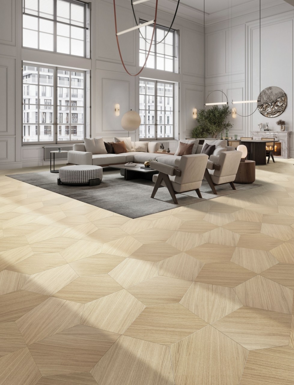 意大利Berti几何拼花地板,将正方形、三角形、菱形等基础几何图形,通过巧妙的排列组合,创造出千变万化的图案。或对称规整,呈现出秩序井然的美感;或自由灵动,带来富有动感与活力的视觉冲击,满足当下个性空间追求,打破你对传统拼花地板的想象~