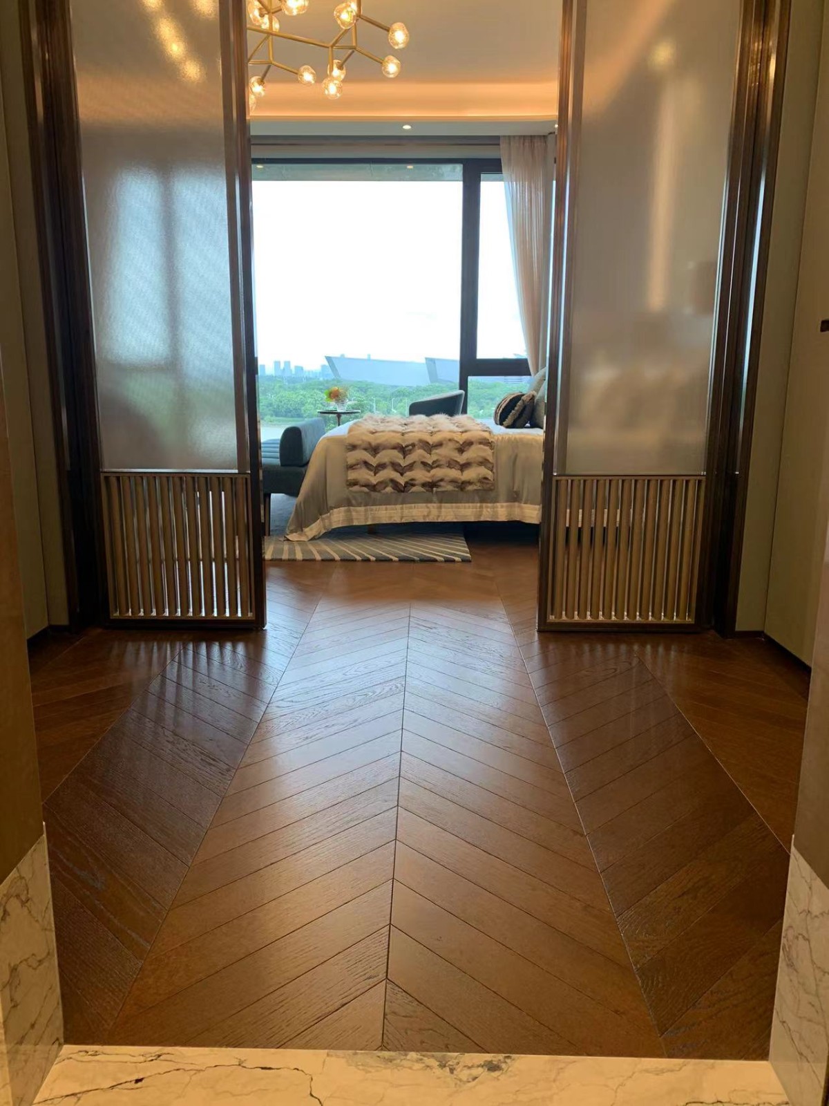 广州星河湾半岛,全国闻名的超级豪宅,坐落于番禺洛溪岛东端岛尖,占地面积42万㎡,三面环江,北接万亩果林生态区,南眺万博CBD繁华,东望大学城与黄埔古港文脉,将 “江景、园林、城市天际线” 三重景观纳入窗前。这样的优越地段,注定拒绝平庸的材质堆砌,它需要的,是同样承载着时光厚度、具备殿堂级品质的搭档。