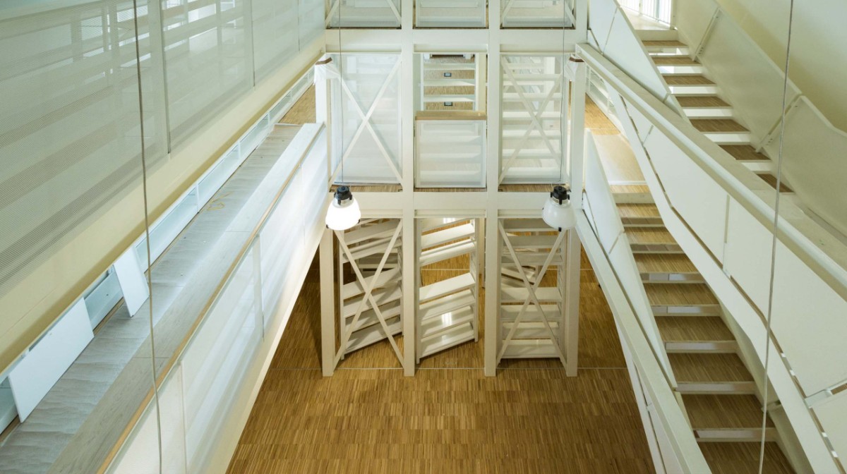 从典藏着上万本书籍的图书馆空间,步行穿过层峦叠嶂的回廊阶梯,在宽敞的阶梯教室,会议空间,目光所至,皆由berti工业橡木地板铺就。