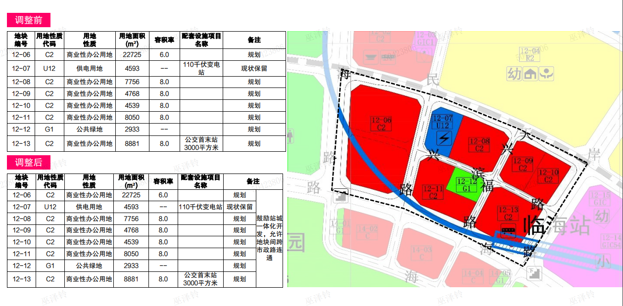 临海站周边地块调整,鼓励站城一体化开发(容积率8)