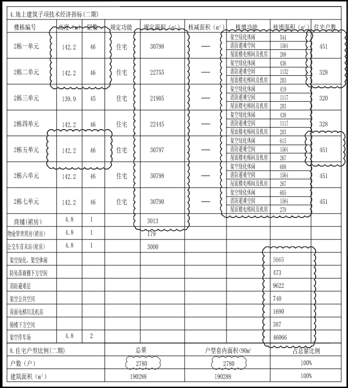 七、根据新版《深圳市建筑设计规则》,经济技术指标表中核增建筑面积及相关数据相应修改。总建筑面积由323614.31㎡调整为315307㎡,计容积率建筑面积由252340.59㎡调整为259123㎡,地上核增建筑面积由55860.86㎡调整为62643㎡,不计容积率建筑面积、地下核增建筑面积由71273.72㎡调整为56184㎡。