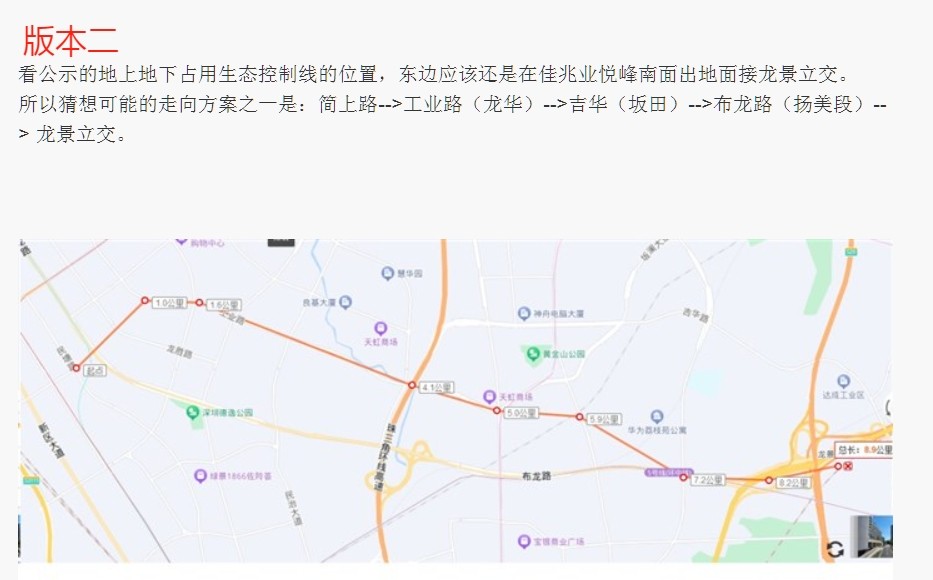 引用197楼一线海的发言:走工业路可能性不大,工业路地下这五年都在建地铁。没有施工时间空间。走布龙路,梅观互通,看来最合理,效率也最高。引用196楼楼主的发言:从最近的龙岗区规资局发布《关于宝鹏通道工程(简上路至龙景立交)占用基本生态控制线的公示》表面宝鹏通道采用隧道敷设,有人推测有两个版本的线路走走向: