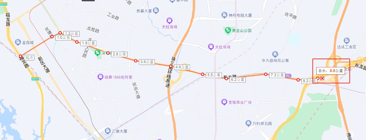 之前的描述为:西起简上路-布龙路交叉口,东至龙景立交,全线长约7.2公里