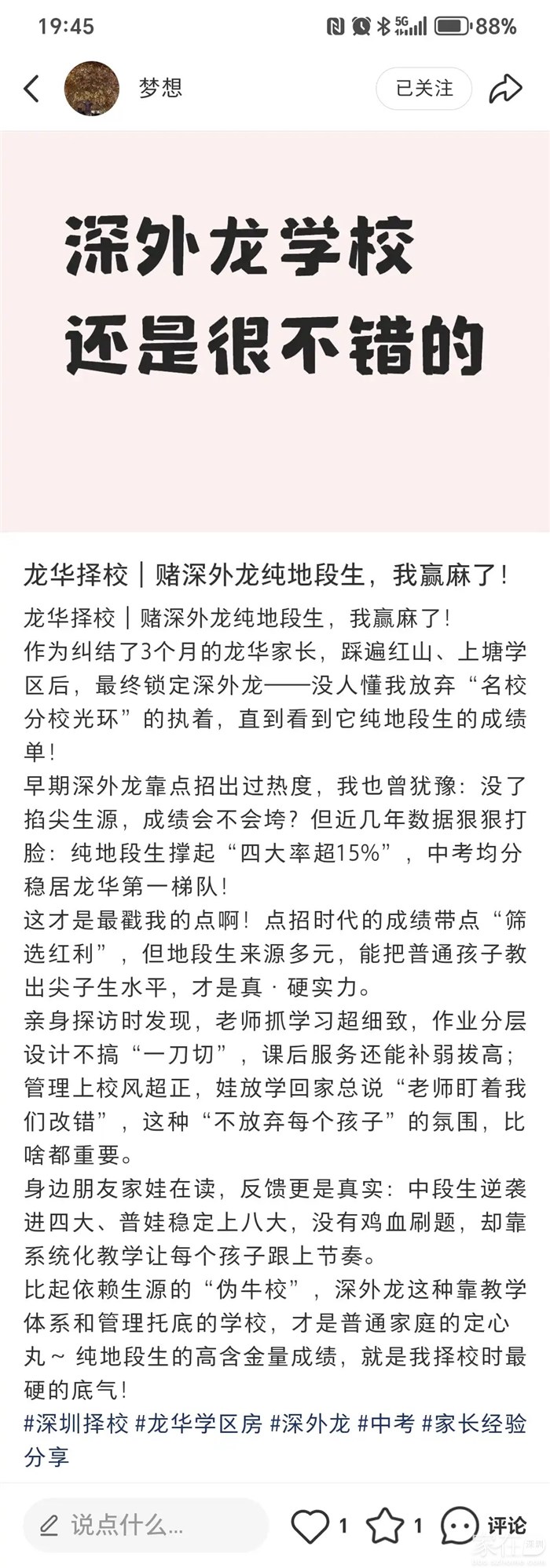 引用HEAT3的发言:垃圾学校就会请垃圾人黑真正的好学校,注册多个平台的账户,专业黑龙华真正的好学校, 吹你的这个冠名区办假名校(深外龙),看看这个假名校的房价跌的最惨就知道了,并且这个假名校深圳每个区都去冠名,现在布吉中学也要改名叫深外布了