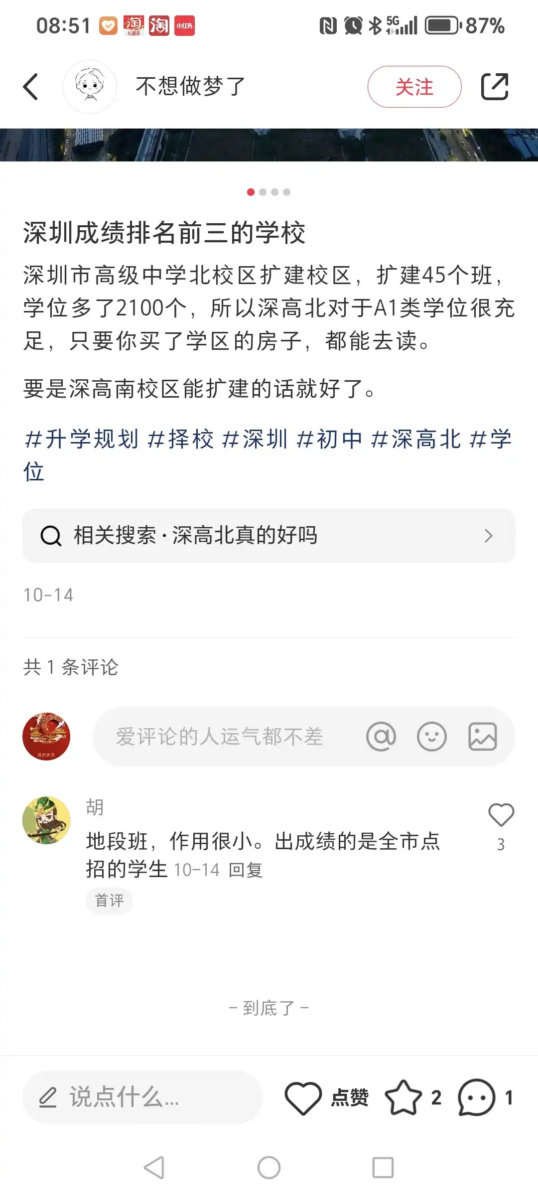 引用303楼涛涛江水1的发言:家长在厕所哭你都能知道,你是所长吗。能在红山买房读的,觉得深高北不好,直接卖了,在深外龙那还能换套更大的呢。但红山还是抢手喔。没有像龙悦居这种腰斩盘喔