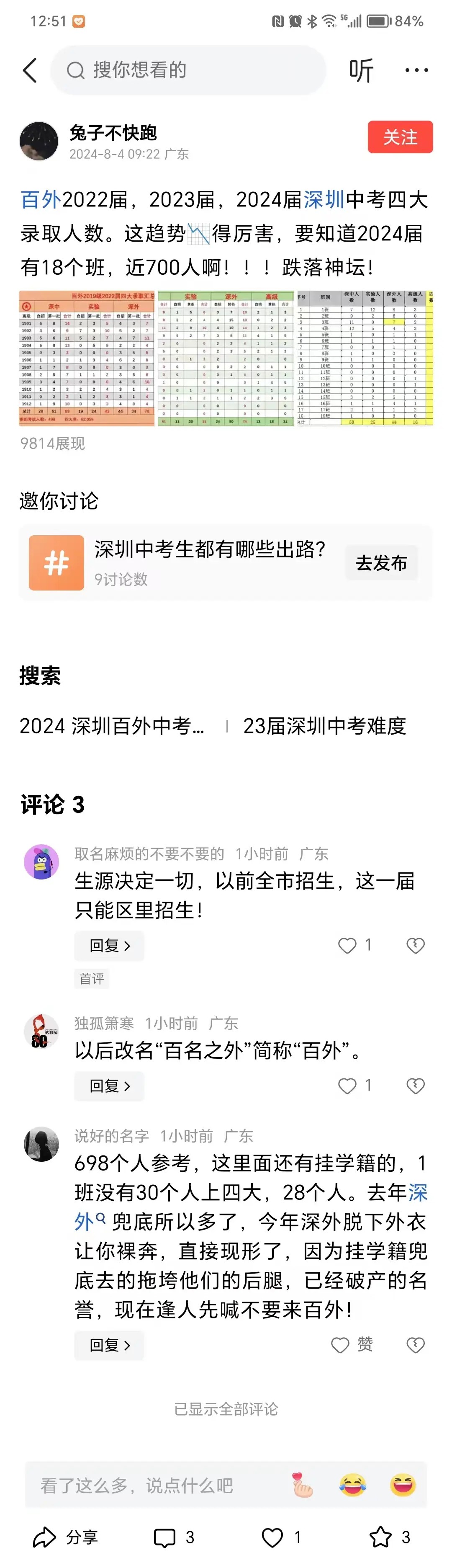 引用alexhy的发言:等你家孩子考上公办普高再说吧。引用我是钟叔叔好朋友的发言:是呀,还不如钟叔叔孩子的普高强呢,幸好没去深实验哦引用alexhy的发言:深实验高考成绩作假了,学习深高北中考成绩作假吗?引用我是钟叔叔好朋友的发言:20%的地段生能得到点化,不错了,不知道钟叔叔小孩在深外龙被培养的怎么样了呢?引用alexhy的发言:深高北地段生就这么烂,遭人埋汰。引用我是钟叔叔好朋友的发言:就是没有大V吹深外龙,真是着急死人了引用alexhy的发言:爱踩盘的房东吹深高北和龙华实验学校,深圳木子吹宝安中学初中部,楼颠吹明德实验学校和南二外,南外高新,熊大和深圳教育学长吹深高南和深实验。大V 都是分片包干的。引用我是钟叔叔好朋友的发言:论实力,一个学校都没有,除了深外龙嘛引用alexhy的发言:明德实验学校依靠点招劝退做成绩,老套路了,没几个学校有实力,都是大 V 在吹水,