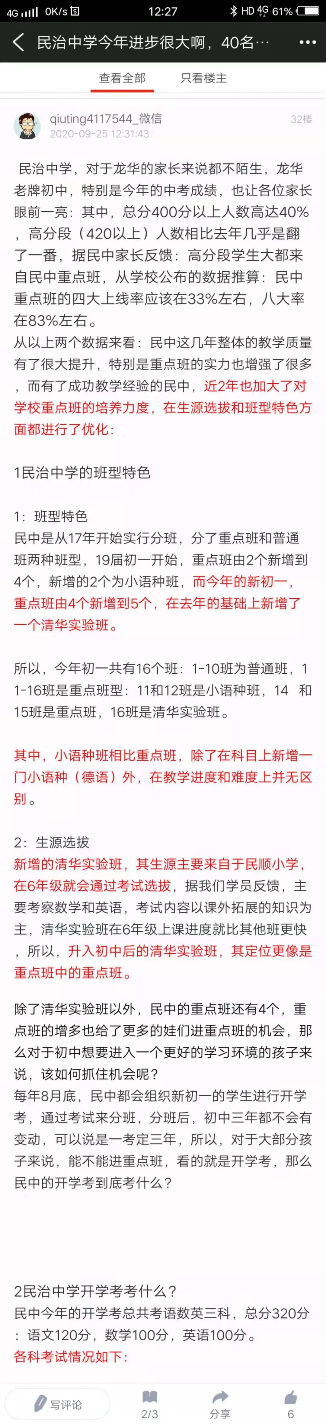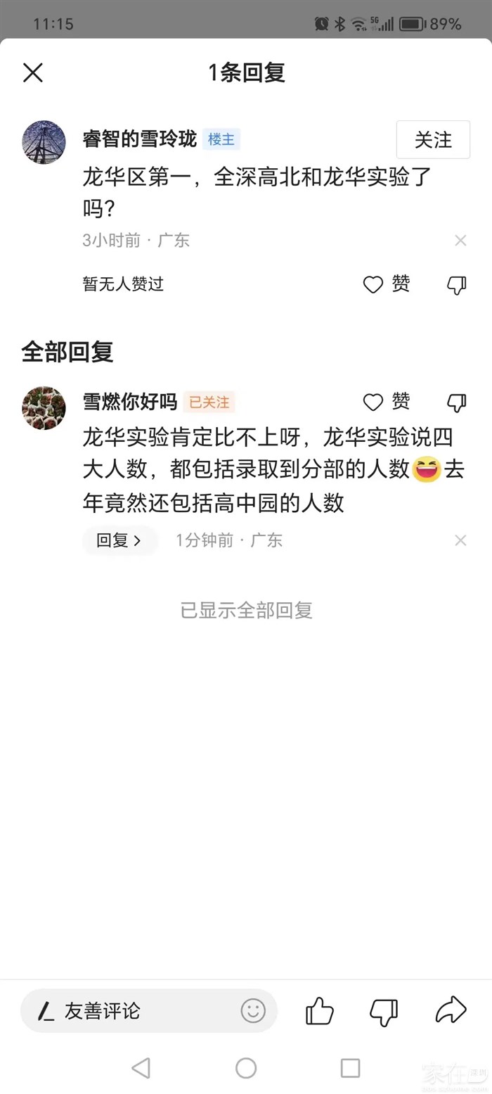 引用alexhy的发言:红山地区没有一所学校能拿出手,民治中学普通班公办普高率 50% 左右,深高北和龙华实验学校就不说了,地段生拉垮,从来没有好过。深外龙 2023 年已经大规模点招尖子生了,地段生和点招生教学质量都得看深外龙,不需要搞劝退就能搞出相当好的成绩。一月份水榭春天 5 期三房成交价又是 768W 了,破 800W 了,要努力啊。引用我是钟叔叔好朋友的发言:要是…深外龙就…
