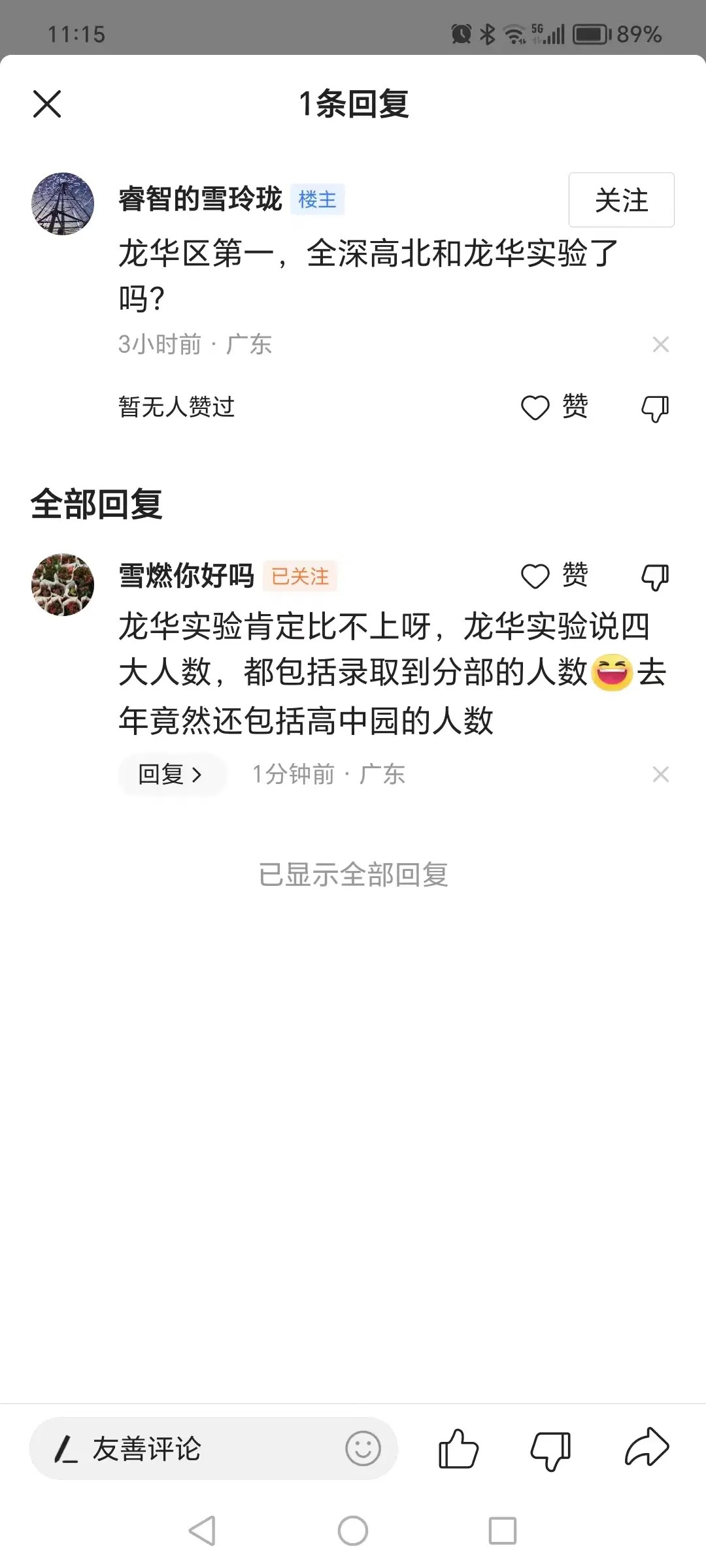 引用alexhy的发言:深高北和龙华实验学校算不算红山地区的耻辱?没有实力就别吹。引用我是钟叔叔好朋友的发言:知道了知道了,深高北龙华实验,深中及深中嫡系学校,深实验及深实验嫡系学校,南外,宝中…等等,都是一个比一个假,一个比一个差