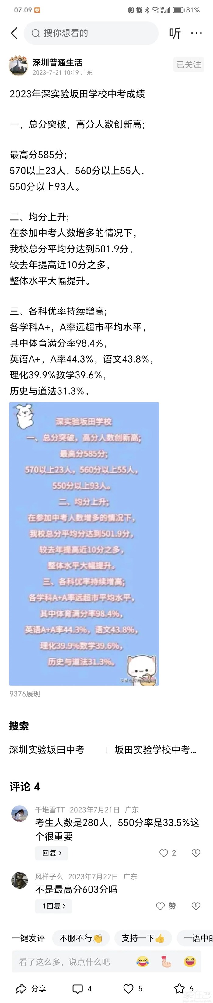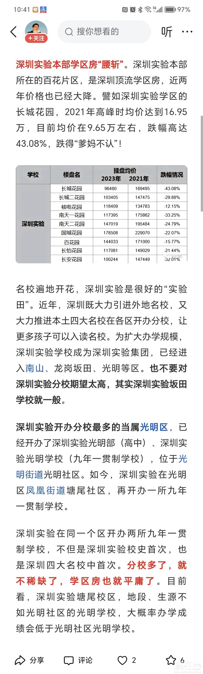 引用涛涛江水1的发言:这么牛逼,片区房价也跌了,入学积分排中下游。这名校还真是没档次呀引用44楼alexhy的发言:所以在龙岗,全部看龙头大哥华南师范大学附属大运学校,今年参考172人,纯地段生,考上四大14个,全市顶级水平。龙华区看深外龙,前面三届纯地段生9%以上四大率,今年据说考得没有前面三届好,具体情况不了解,只是业主在传。我们都是实话实说,绝对不造假,深外龙今年点招生大概30人左右,来自于书香小学和龙华行知小学。引用涛涛江水1的发言:不行就是事实,还要怎么发,今年考试排第几。片区房区跌得多猛呀。不行就是不行了。还要什么截图引用39楼alexhy的发言:你要是有本事,发点深外龙地段生不行的截图出来啊。引用涛涛江水1的发言:龙悦居跌幅前五是不是真的。引用29楼alexhy的发言:你说这话就造假了。引用涛涛江水1的发言:我不像你,有几个号,想怎么做造假的证据都行。我用真实数据说话而已,没造假龙悦居跌这么猛引用26楼alexhy的发言:是,你吹水龙岗外国语学校和深中龙初被怼了后,一直想找回场子就是没有机会,要是能发点深外龙作假的证据出来就有说服力了。引用涛涛江水1的发言:龙华学校多多少少都有造假,造假最猛的应该是深外龙。很多知道消息的业主都在抛盘,导致龙悦居的价格腰斩再腰斩。